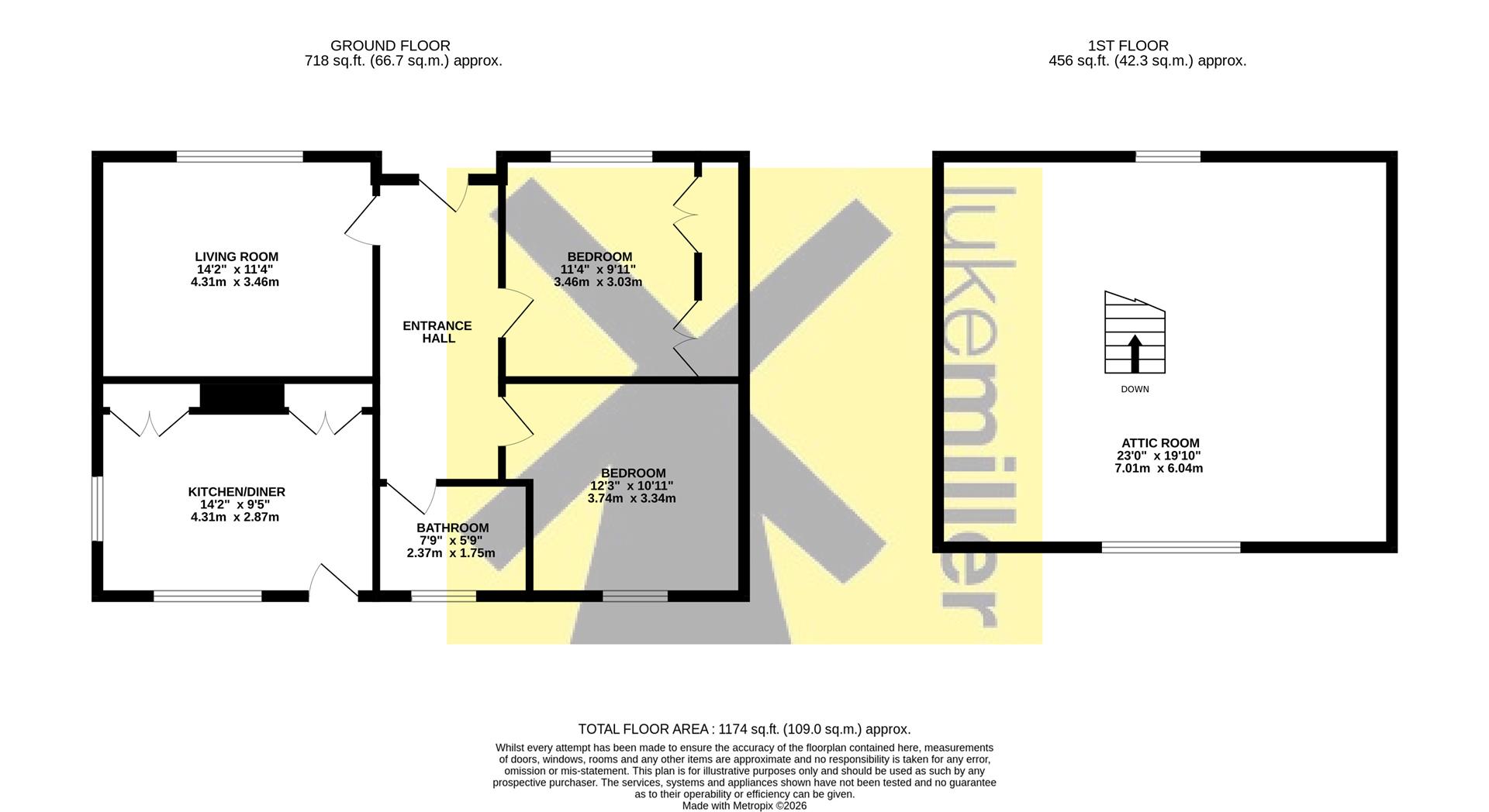 Accessed via a drop-down ladder from the reception hall, the loft area offers excellent space and height, with windows to both the front and rear elevations. This area may be of particular interest to purchasers seeking a property with potential to extend the living accommodation further, subject to the necessary approvals.