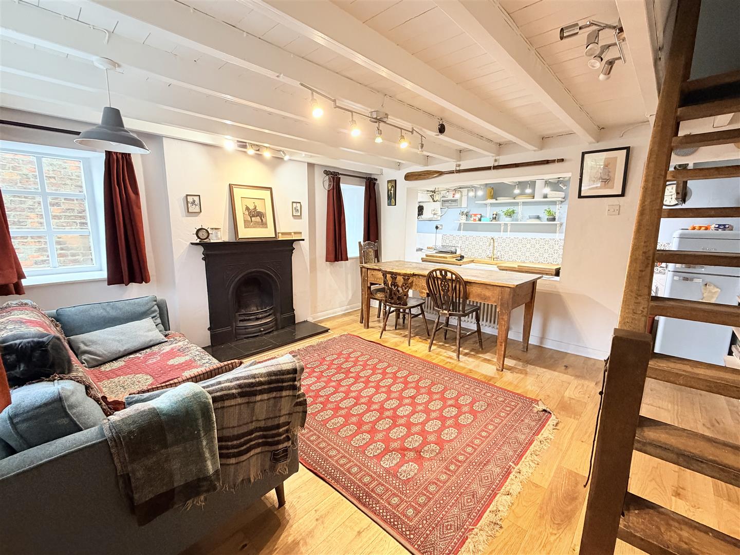 A stone-built cottage set within the village of Boltby, offering a blend of character and comfortable, well-balanced accommodation. The property includes a beamed living room with open fire, a fitted galley kitchen, and two bedrooms with open views—towards the village church at the front and countryside to the rear. Externally, there is a generous garden a few steps from the house, along with a detached garage and outbuildings.