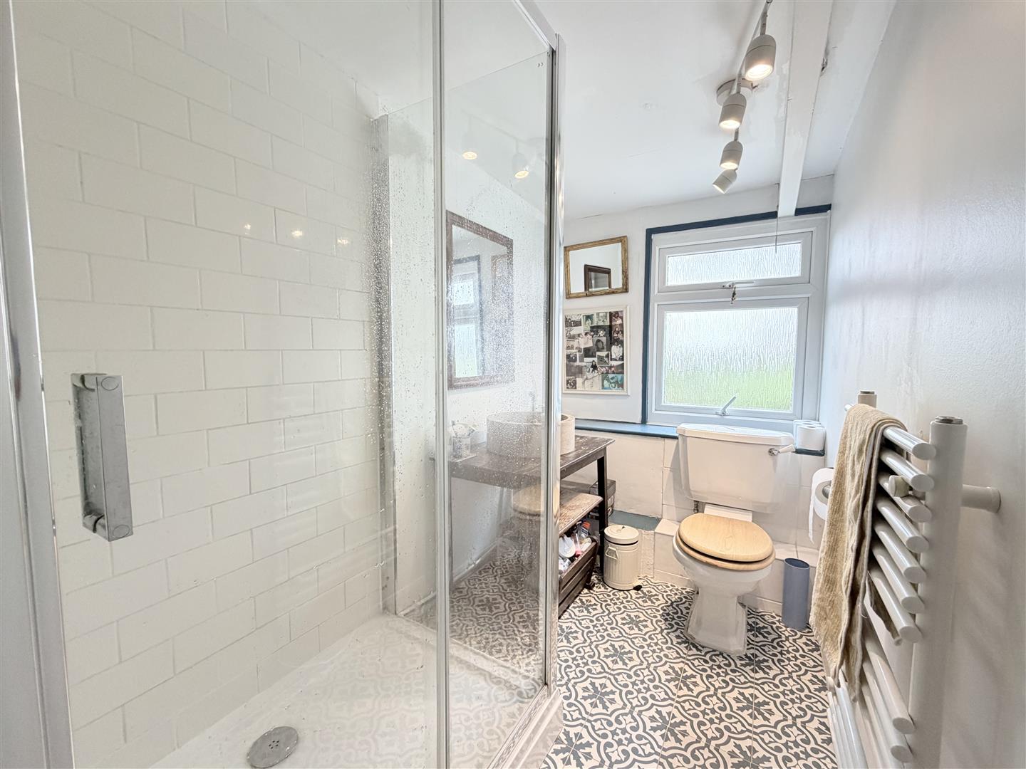 The shower room is fitted with a walk-in enclosure, wash basin, and WC, presented in a clean and straightforward style.
