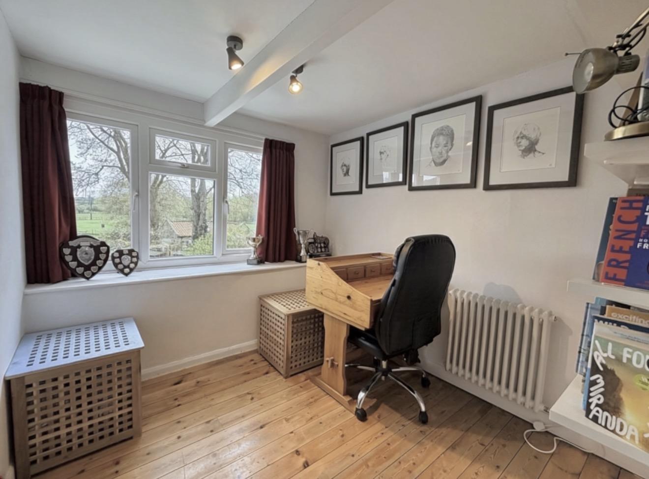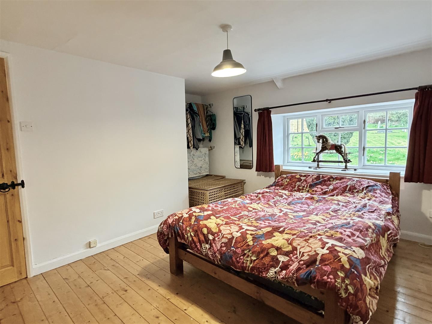 The second bedroom also benefits from wood flooring and a large window, with a south-facing orientation allowing for good natural light throughout the day. This room looks out over open countryside to the rear.