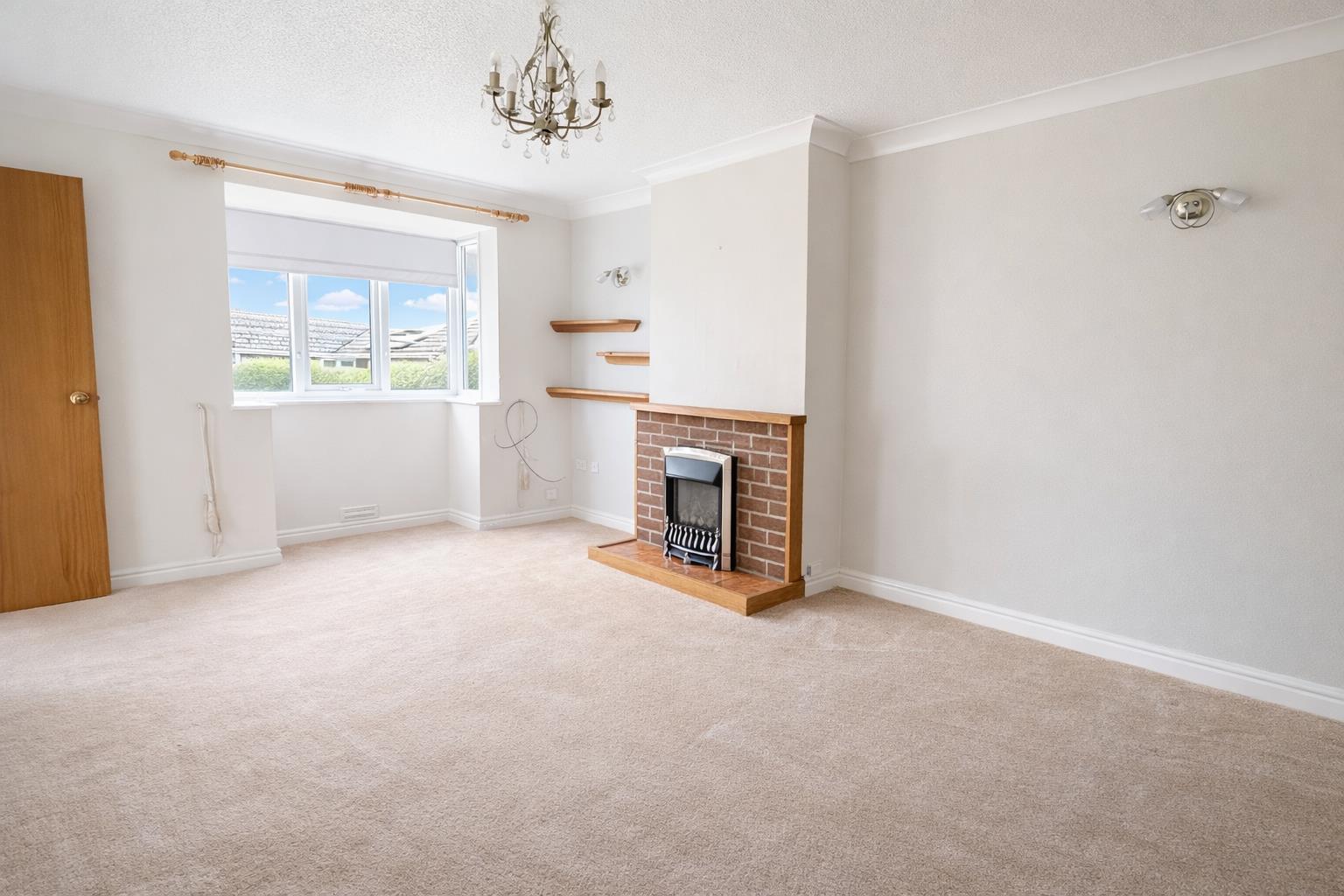 The lounge is a generous room featuring a double-glazed bay window to the front, a living flame gas fire set within a brick surround and tiled hearth, wall lights, television point, coved ceiling and a central heating radiator. From here, the inner hall leads to both bedrooms and the bathroom. There is an airing cupboard with shelving housing the combi boiler, a central heating radiator and loft access via a pull-down ladder.