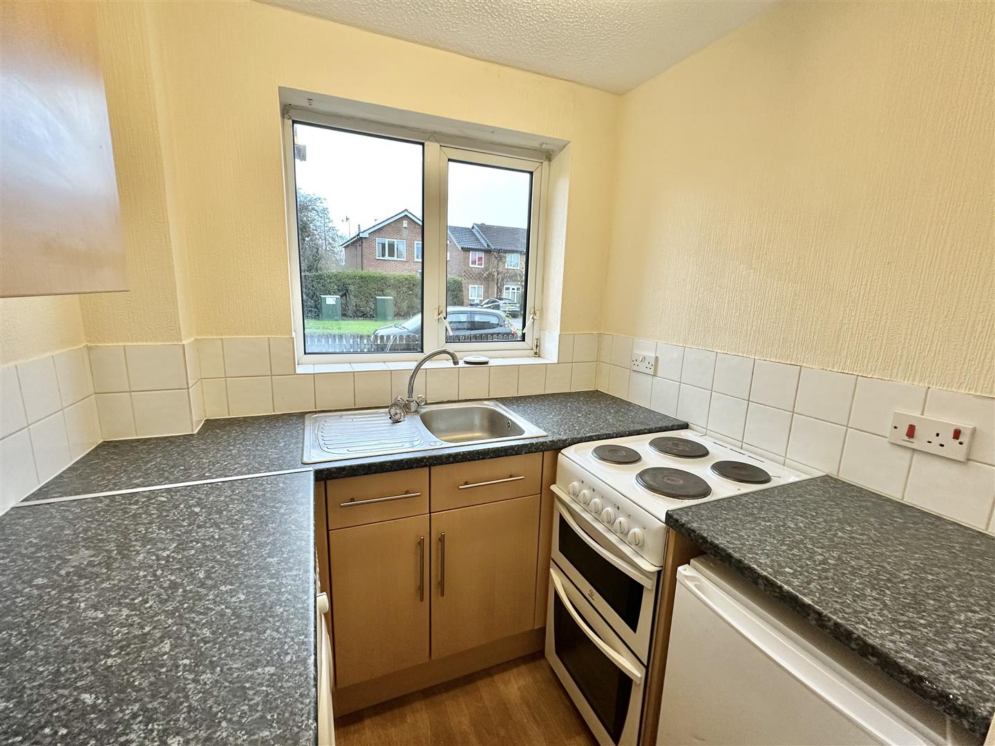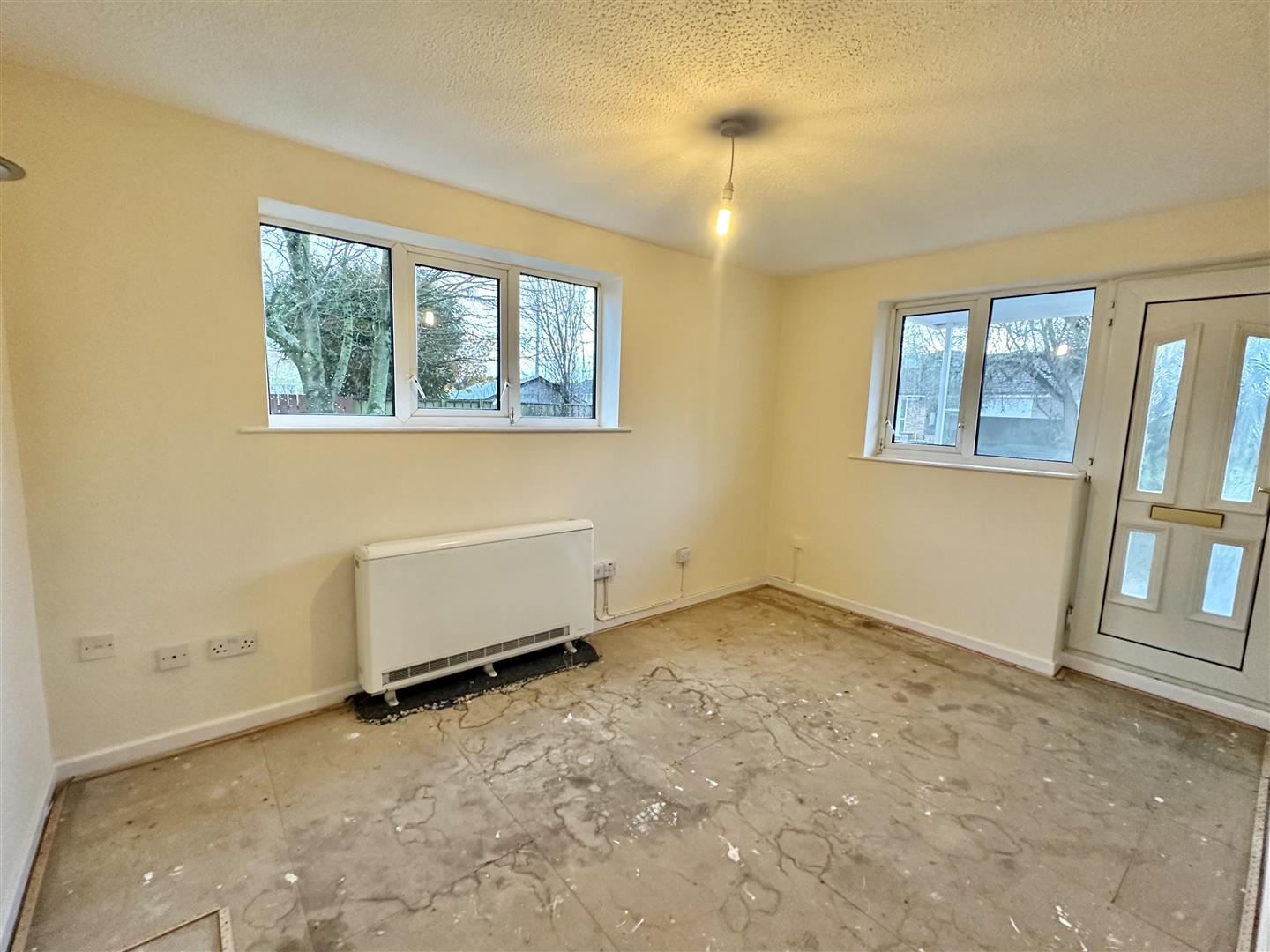 The ground floor offers a bright living room with windows to two sides, giving the space an open feel and allowing room for both seating and a dining area. The kitchen sits just off the living room and is fitted with a practical range of units, good worktop space and integrated appliances suited to everyday use.