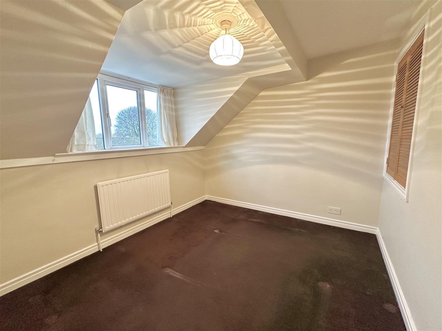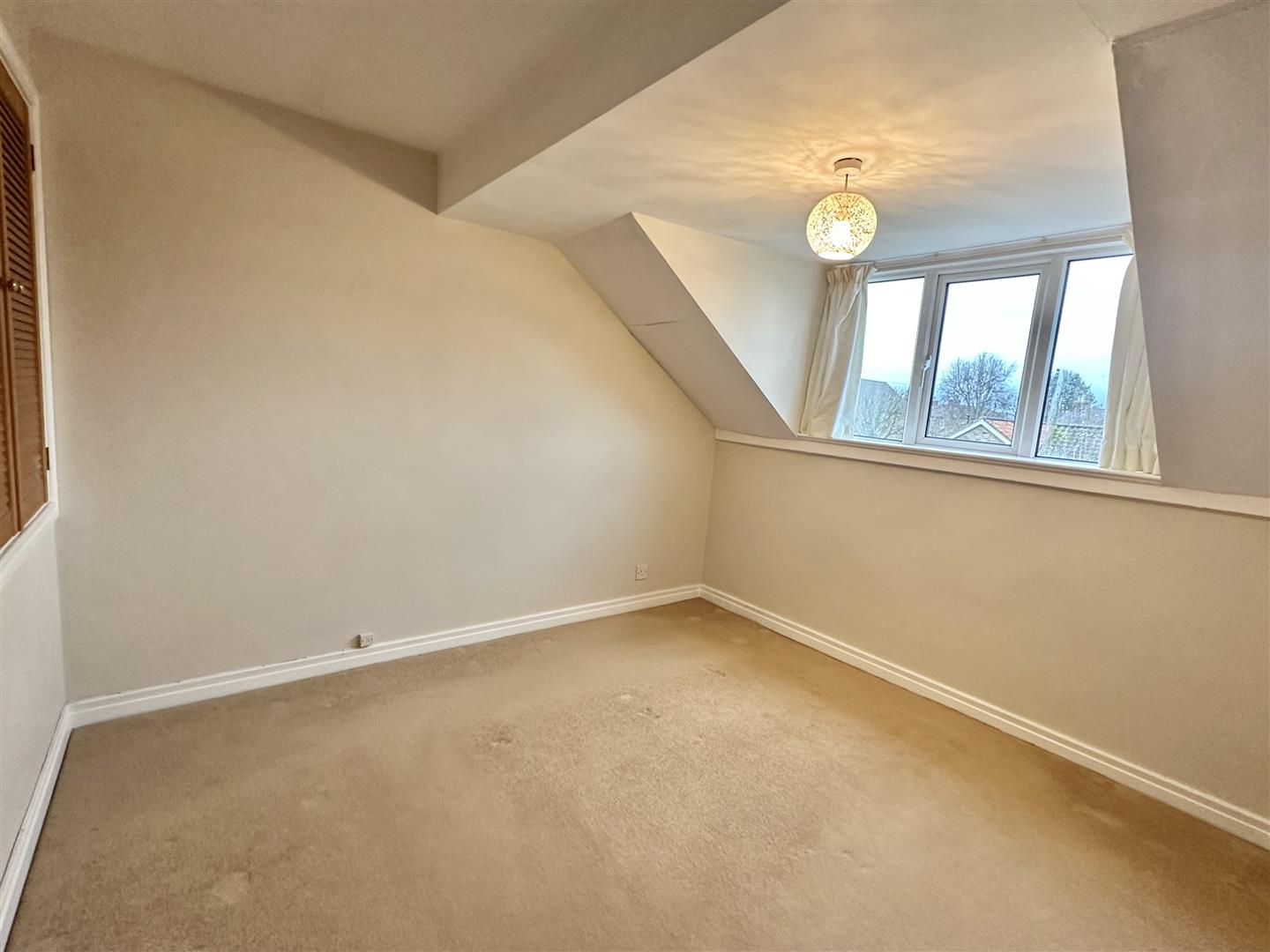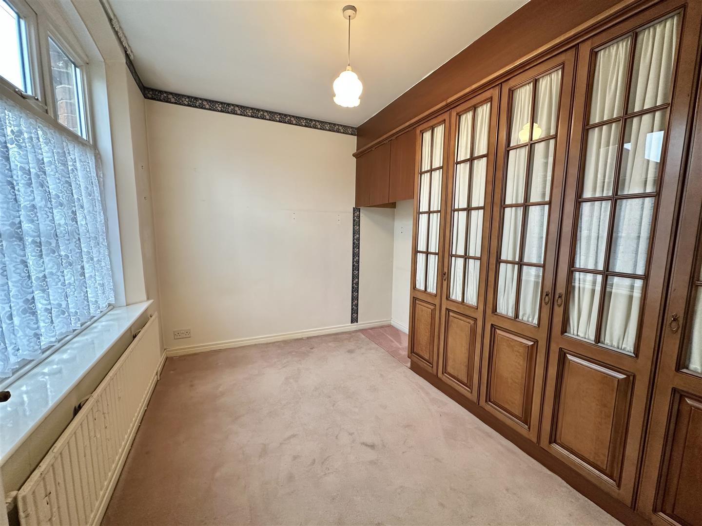 On entry, the large reception hall creates a useful central space and could double as a dining area if needed, as it sits next to the kitchen. The kitchen is fitted with base and wall units, roll-top work surfaces and a range of integrated appliances, and it also has a door opening to the front garden. From the dining area, a short run of steps leads to the second reception space, which has a door out to the rear. From here, the layout opens into two further reception rooms. The main living room has windows on two sides and a living-flame gas fire with a stone hearth as its focal point. The second reception room works well as a study, though it appears to have been used previously as an additional bedroom, with fitted wardrobes and a window to the rear.