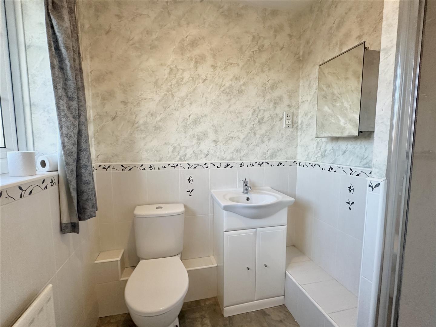 On the first floor, the landing gives access to four well-proportioned bedrooms. The primary bedroom benefits from an en-suite shower room, while the main bathroom offers a step-in shower cubicle, panelled bath, WC and wash hand basin, complemented by tiled surrounds and a rear-facing window. A linen store and loft access hatch complete the first-floor accommodation.