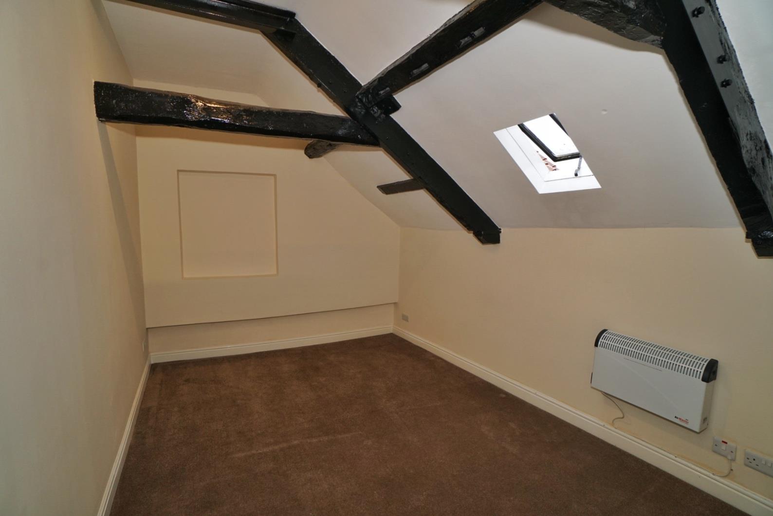 This double bedroom has a skylight window and an electric heater.