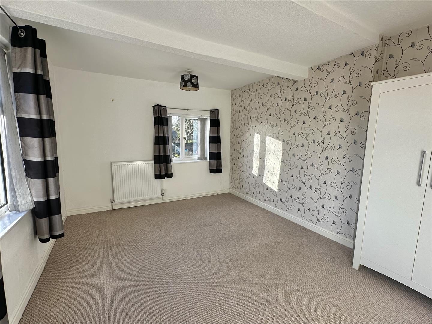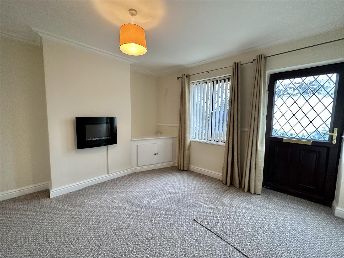 The property is entered into a living room positioned to the front elevation, offering a comfortable main reception space with room for seating and storage.