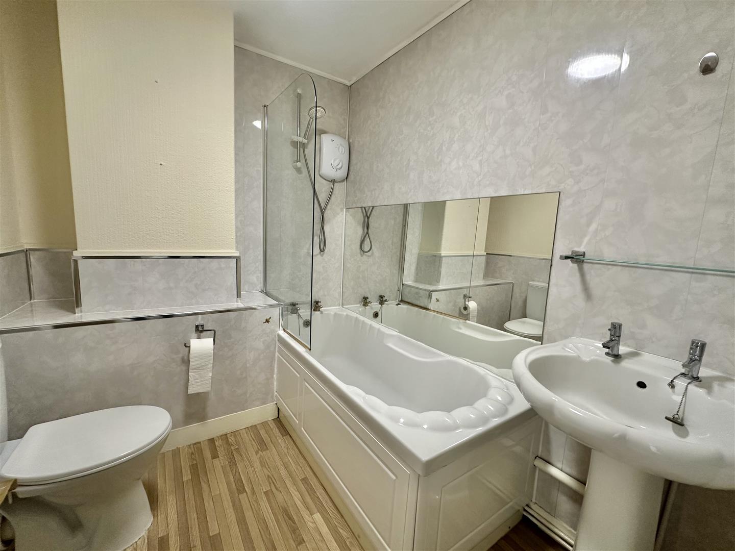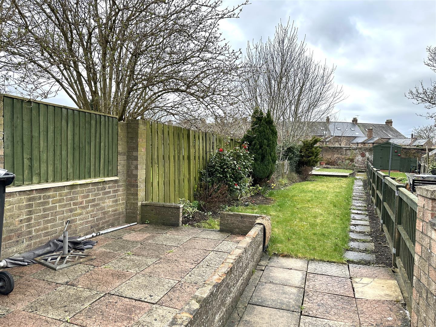 Outside, the rear garden is a real feature for a property of this type. It is larger than expected, mainly laid to lawn with a patio area ideal for seating, and includes a brick-built storage shed. The garden offers good outdoor space for everyday use, gardening, or entertaining.