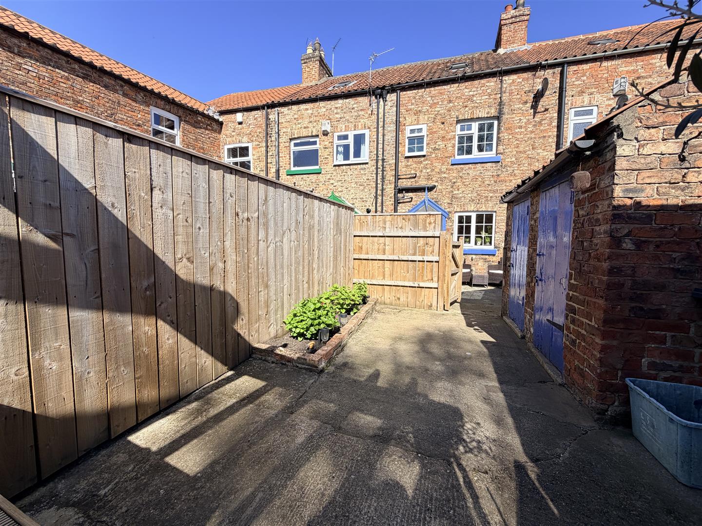 Externally, the gardens have been improved to create a raised seating area beneath a pergola, enjoying a pleasant outlook across the plot. There are also two brick-built outbuildings, likely originally used for fuel storage and general use, which remain useful for storage today.
