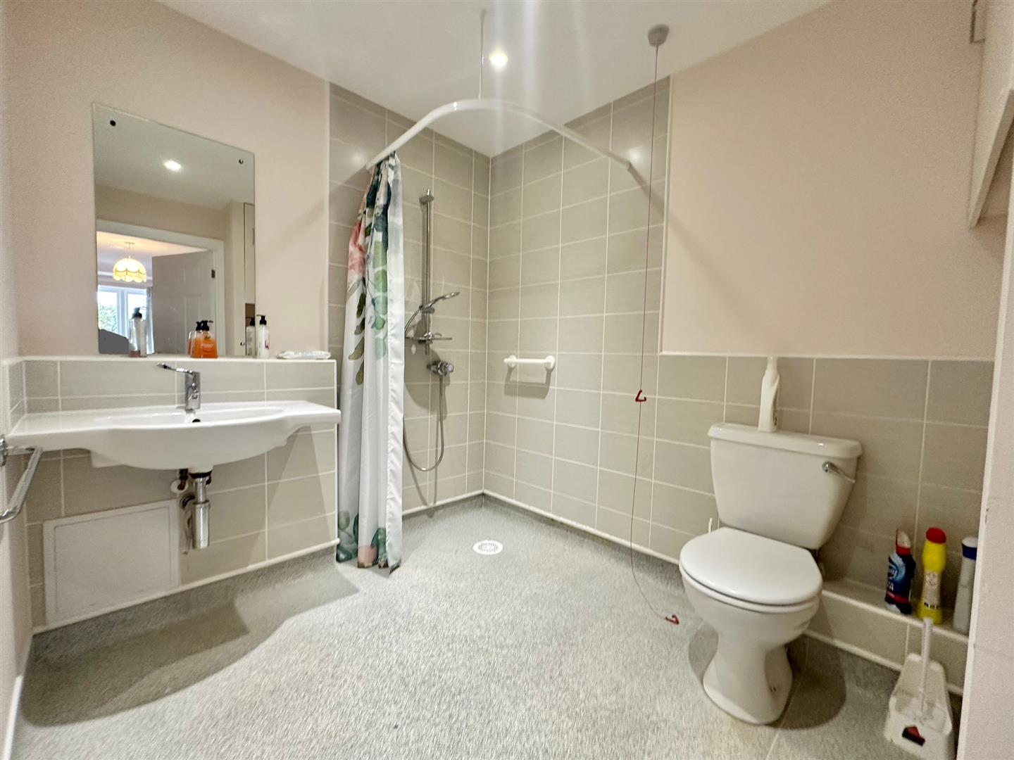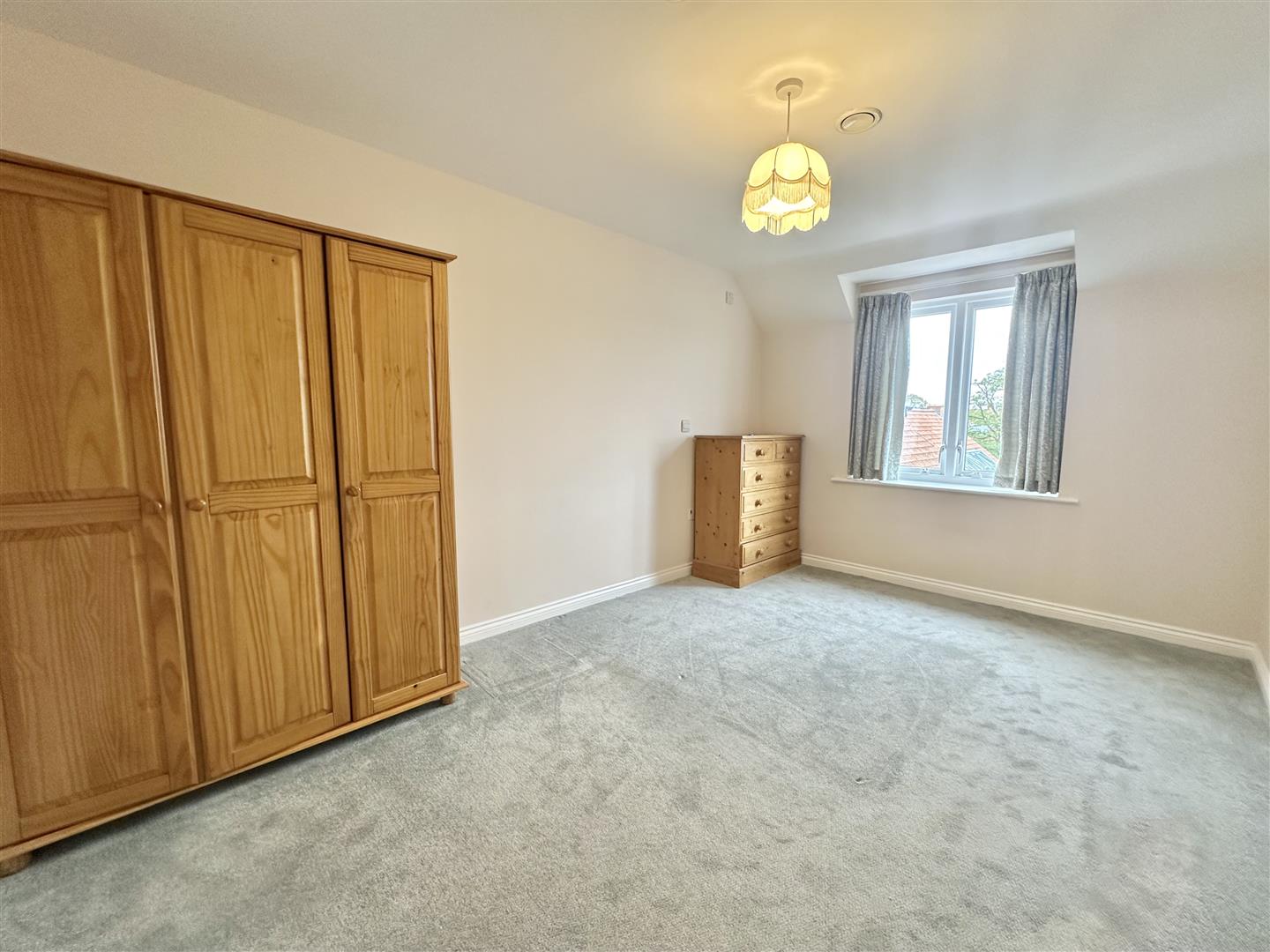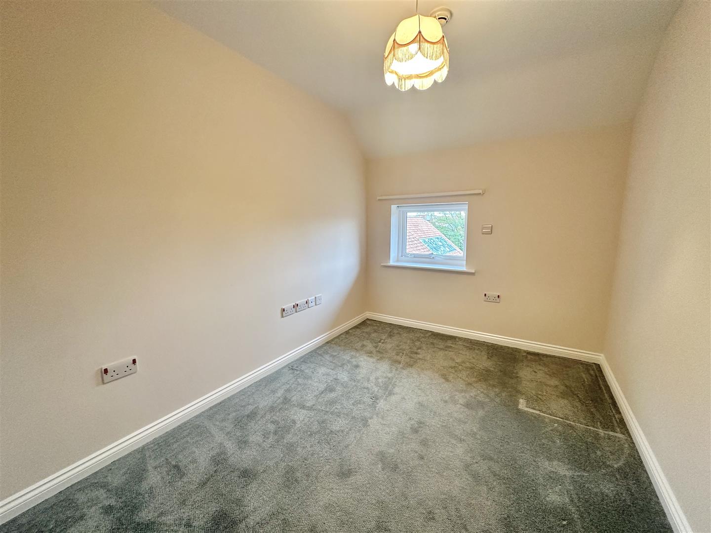 The main bedroom is a comfortable double with a front-facing window and a door to a shallow wardrobe/storage room. Bedroom two is a versatile single or small double, also with a front aspect. The shower room is a practical wet room with walk-in shower, WC, wash basin, and part tiled walls.