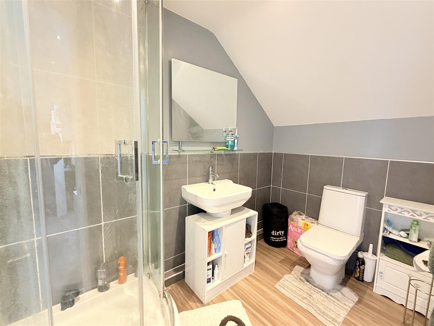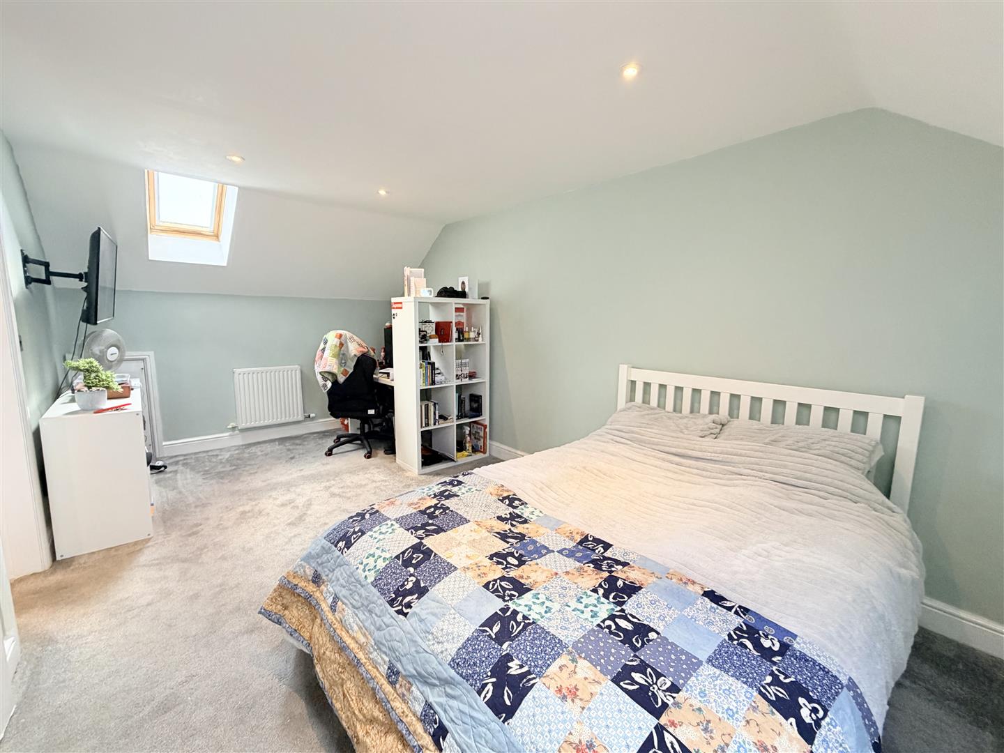 The second floor is dedicated to the main bedroom, which runs through the depth of the house. This is a generous room with Velux windows to both front and rear elevations, a built-in double wardrobe and additional storage within the eaves. The room also benefits from an ensuite shower room.
