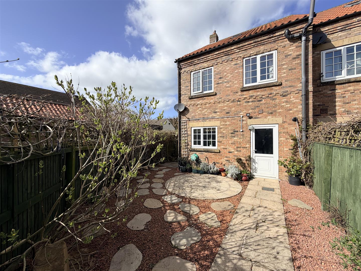 Externally, the front of the property is laid to lawn with a pathway leading to the entrance, enclosed by a low brick wall with wrought iron gate. To the rear, there is a circular stone patio seating area, lawn garden, planted borders and fenced boundaries with gated access and a stone flagged pathway.