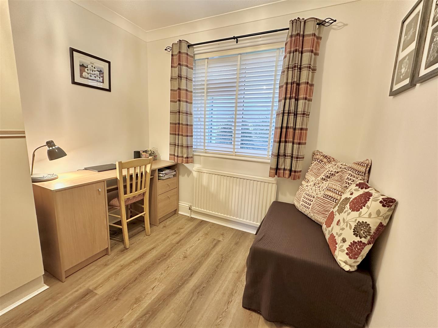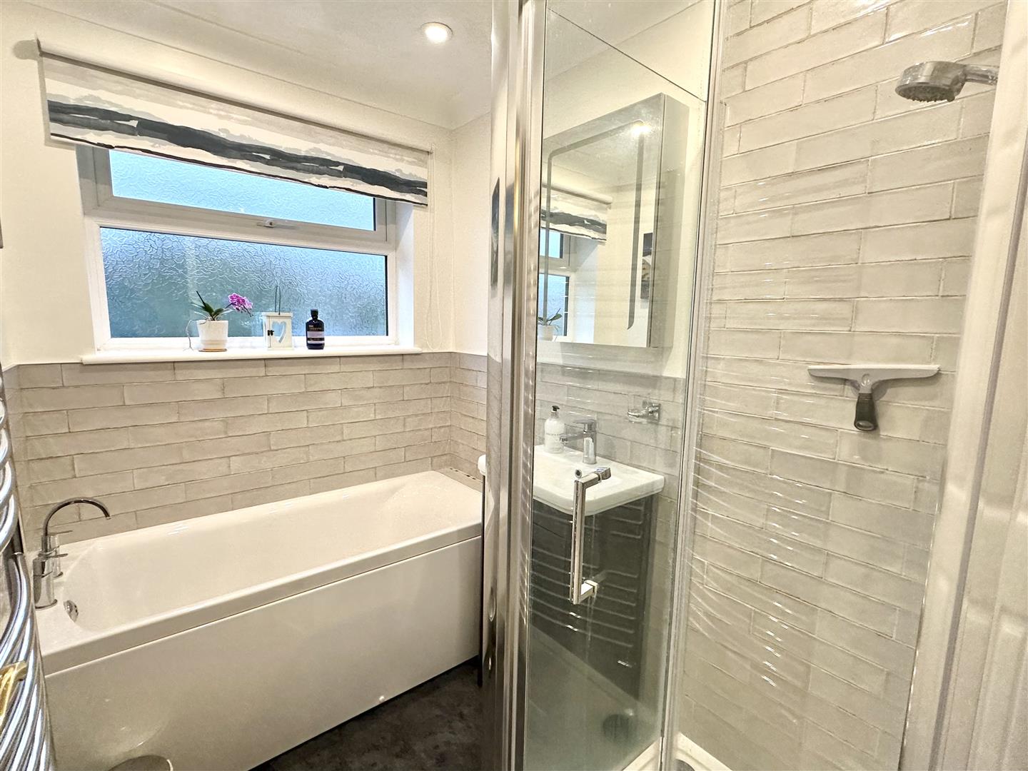 There are three bedrooms in total, comprising two well-proportioned doubles and a comfortable single room. The recently upgraded bathroom ensures the incoming owners will not need to consider refurbishment in the near term. It is arranged with a panelled bath, separate shower enclosure, wash hand basin and a modern tiled finish.