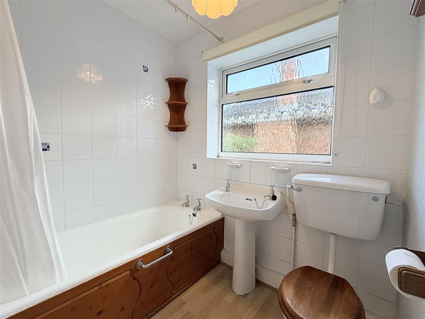The accommodation is completed by the bathroom, which comprises a panel bath with shower over, WC, and wash hand basin set on a pedestal, with tiled surrounds.