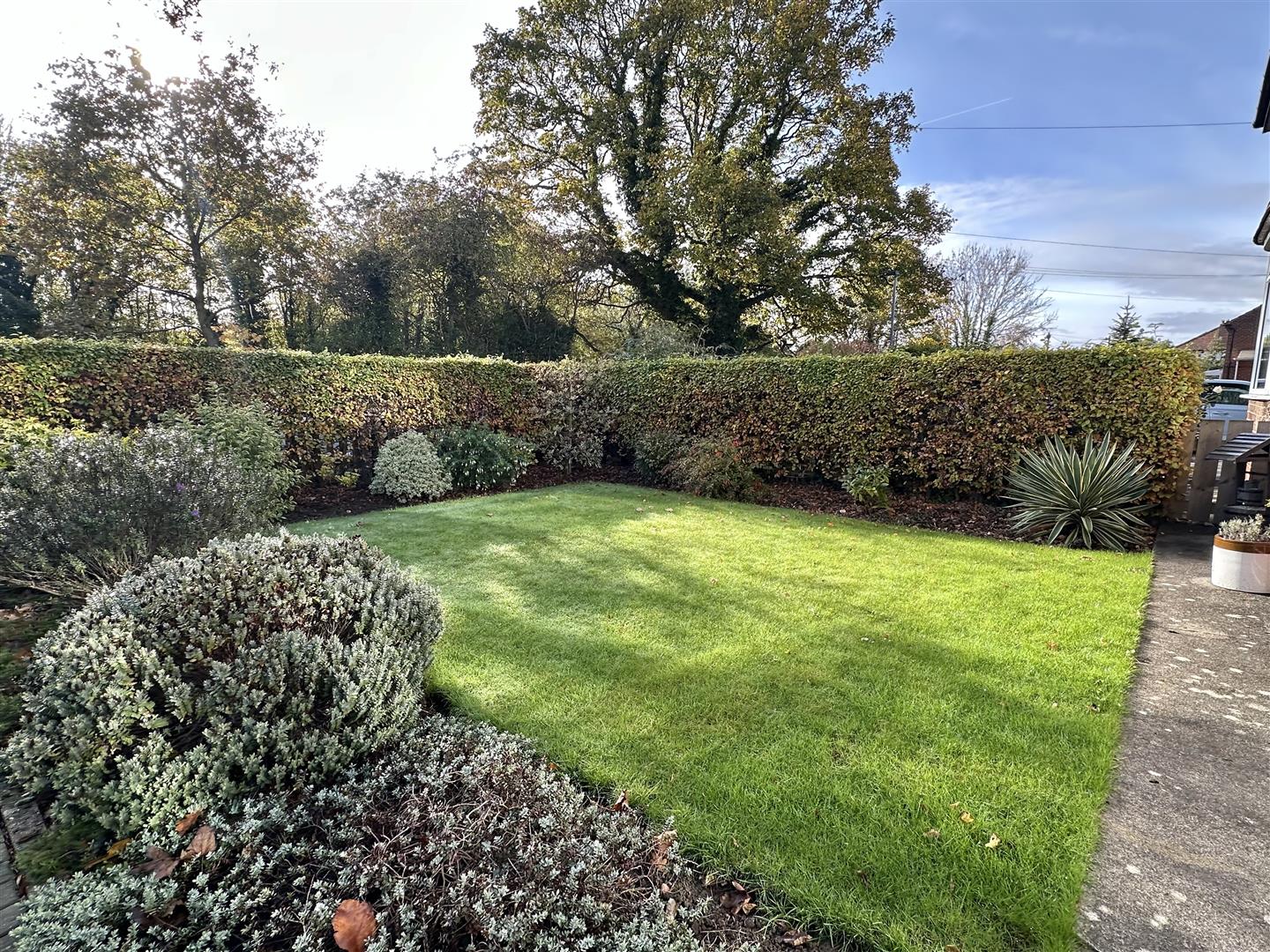 External Features The front garden is accessed via double half-height wrought iron gates leading to a spacious driveway. A manageable lawn and pathway lead to the front door, bordered by mature hedging that provides privacy.