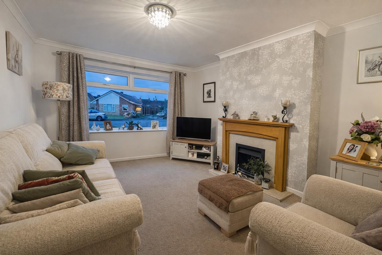 Externally, the gardens are well maintained, laid mainly to lawn with established borders, and the extended driveway provides ample off-road parking.
